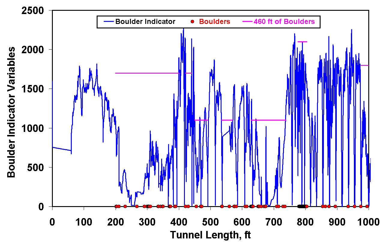 called for prices ($/ft) for 15 feet of tunnel in boulders for a 1000 ft long