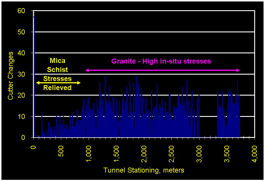 retained the in-situ stresses. These stresses acted to make rock comminution more difficult, thereby slowing